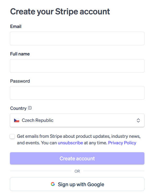 - Založením Stripe účtu