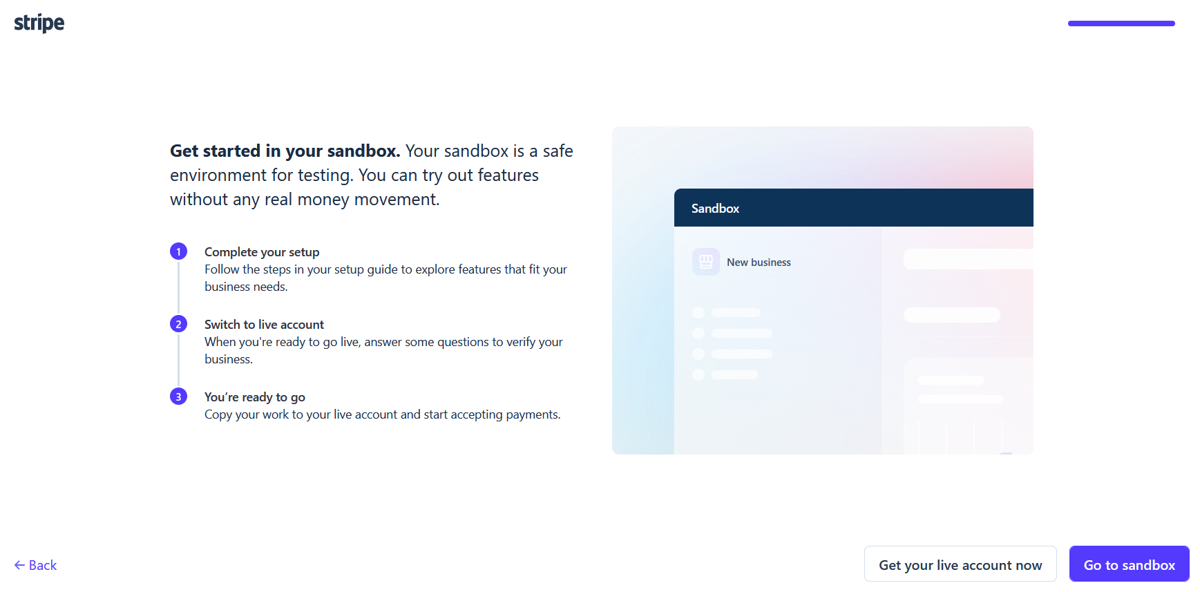 Účet Stripe je ve výchozím stavu v testovacím režimu, tzv. Sandbox. Testovací propojení můžete v budoucnu využít pro testování online plateb.