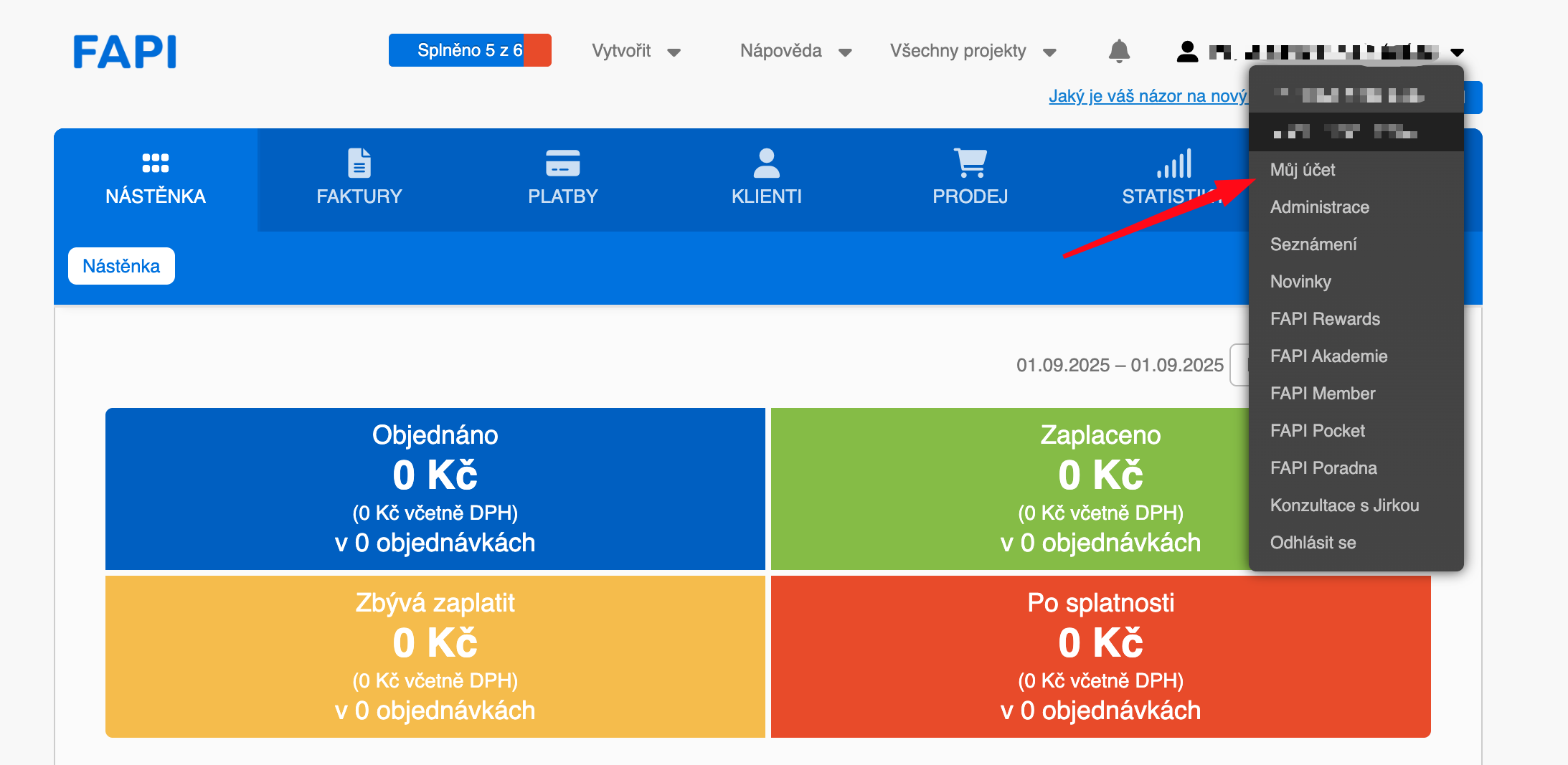- Klikněte na možnost "Můj účet".