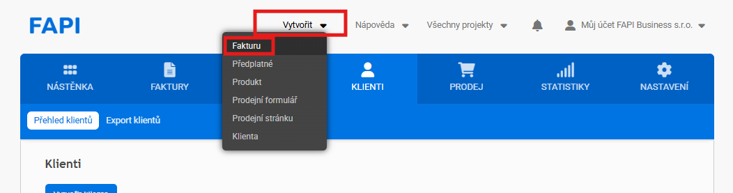 Tímto způsobem se dostanete nejrychleji rovnou do administrace tvorby nové faktury.