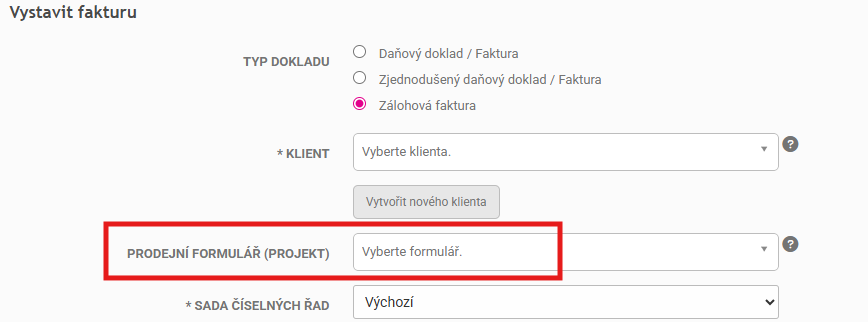 Při vytváření faktury doporučujeme vždy přiřadit ji ke konkrétnímu prodejnímu formuláři.