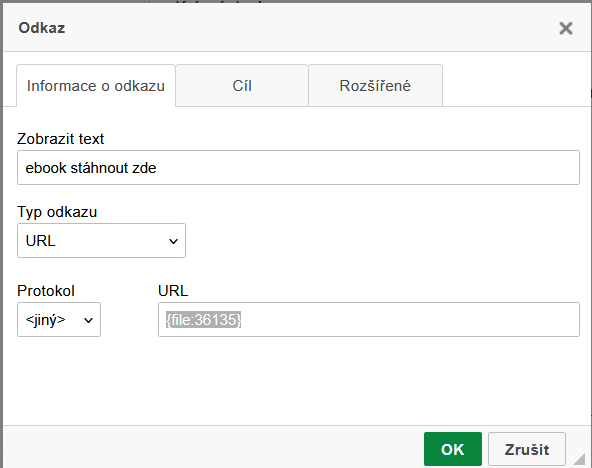 - Odkaz pro stažení si nastavte takto: