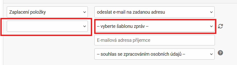 - Vyberte akci odeslat e-mail klientovi nebo odeslat e-mail na zadanou adresu