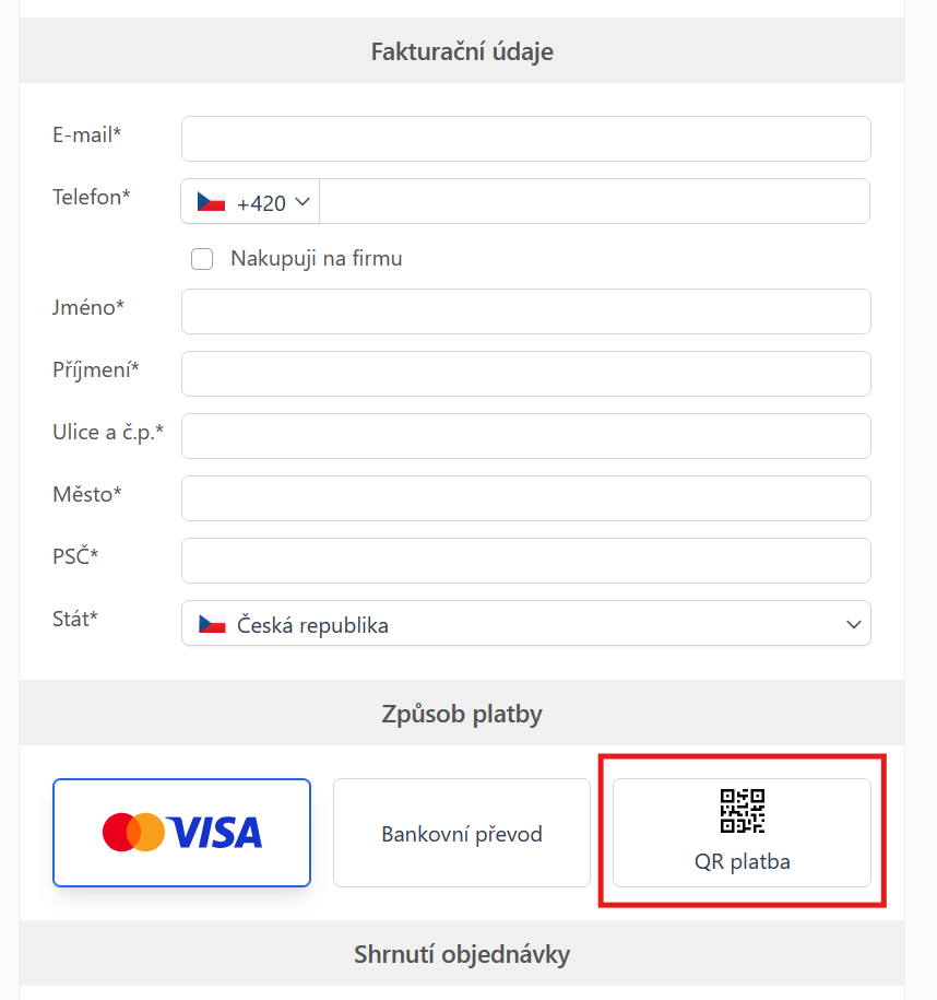 QR kód jako způsob platby v prodejním formuláři
